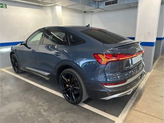 Audi e-tron Sportback 55 Edition One. Historial de mantenimiento digital en Audi. PVP Nuevo: 136730€ Garantía 8 años o 160000km Una lista sin fin de extras: • Cuero Valcona/Milano perforado con costura de ribete para asientos confort • Asientos delanteros con ajuste eléctrico y función de memoria • Calefacción y Ventilación de asientos delanteros con función masaje • Apoyacabezas variables longitudinalmente para los asientos delanteros • Reposabrazos central de confort delante • Apoyo lumbar de 4 posiciones para los asientos delanteros • Servocierre para las puertas • Preinstalación para dispositivo de remolque • Retrovisor exterior virtual • Techo de cristal panorámico • Ayuda de aparcamiento plus con indicación del entorno • Climatización estacionaria independiente • Paquete de portaobjetos y maletero • Cristales traseros oscurecidos • Indicador de limitación de velocidad / sistema de reconocimiento de señales de tráfico basado en cámara • Aislamiento acústico de los cristales laterales. • Retrovisor interior con ajuste automático de posición antideslumbrante sin marco • Inserciones en aluminio cepillado mate oscuro • Revestimiento interior del techo en tela Negro • Lado superior del salpicadero en cuero y elementos interiores en cuero • Climatizador automático de confort de 4 zonas • MMI Navegación plus con MMI touch response • Audi virtual cockpit plus • Bang & Olufsen Premium Sound System con sonido 3D • Segunda toma de carga AC (lado del acompañante) • Asistente para cruces • Cámaras de entorno • Conjunto de luz ambiente plus • Asistente de conducción adaptativo con asistente para emergencias Emergency Assist • Audi pre sense front y pre sense rear • Aviso de cambio de carril con aviso de peligro al bajar y asistente para el tráfico transversal trasero • Cable de carga modo 3 para estaciones de carga pública de máx. 32 A / 22 kW • Faros Matrix LED con luces dinámicas e intermitentes dinámicos