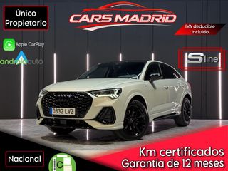 Q3 SPORTBACK 40 TDI S-LINE QUATRRO STRONIC 200CV *** IVA DEDUCIBLE 21% INCLUIDO EN EL PRECIO*** * VEHICULO PROCEDENTE DE CONCESIONARIO OFICIAL * MANTENIMIENTOS TODOS REALIZADOS EN SERVICIO OFICIAL AUDI • 12 meses de garantia NACIONAL premium SIN LIMITE DE KM. • Vehículo NACIONAL • Kilómetros certificados • Sin daños ni accidentes previos • Revisado en 40 puntos • Aceite y filtros recién cambiados por nuestro propio taller • Solo ha tenido 1 PROPIETARIO ANTERIOR MOTOR: 1968 CC, • Total posibilidad de financiación. CONSULTA TU CUOTA SIN COMPROMISO • Aceptamos todos los vehículos como parte de pago • El vehículo se encuentra listo para prueba una de conducción sin compromiso • CAMBIO DE NOMBRE 180€ +IVA • Solo atendemos con CITA PREVIA EQUIPAMIENTO: * PAQUETE DEPORTIVO S-LINE INTERIOR-EXTERIOR * SENSOR DE ANGULO MUERTO * DRIVE SELECT * FAROS FULL LED * CUADRO DIGITAL VIRTUAL COCKPIT * ANDROID AUTO * LINE ASSIST, PARKT ASSIST * CONTROL VELOCIDAD * ESPEJOS ABATIBLES * CAMARA DE MARCHA ATRAS * SENSORES DE APARCAMIENTO DELANTEROS Y TRASEROS * CLIMATIZADOR BIZONA HORARIO Lunes a Viernes de 10:00h a 14:00h - 17:00h a 20:00h Sábado de 10:00 a 14:00. ESTE ANUNCIO TIENE CARÁCTER COMERCIAL, PUEDE CONTENER ERRORES Y CARECE DE VALOR CONTRACTUAL. PRECIO SUJETO A FINANCIACIÓN O CONDICIONES ESPECIALES DE VENTA (CONSULTAR).