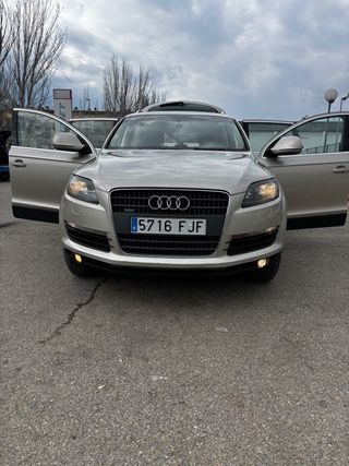 Se vende Audi Q7 7 plazas 3.0 TDI 240CV automático TIPTRONIC en perfecto estado de mecánica motor por cadena de distribución mantenimientos al día neumáticos nuevos ITV en vigor etiqueta medio ambiental B Dispone de todos los Extras climatizador vizona digital ordenador abordo control de velocidad volante multifunción pantalla táctil cámara trasera navegador bluetooth techo panorámico asientos en piel ixofic 4 elevalunas eléctrico dirección asistida airbag radió CD entrada auxiliar 3 juegos de llaves Etc... Se acepta prueba mecánica 8.990€ Se acepta vehículo como parte de pagó tlf.644786388