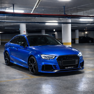 Audi RS3 Sportback 2.5 TFSI quattro DAZA – 400 CV | Automático | 5 cilindros Primera matriculación: 01/2018 Kilometraje: 145.000 km Motor: 2.5 TFSI turbo gasolina (DAZA) – 400 CV (294 kW) Transmisión: Automática S tronic de 7 velocidades Tracción: quattro (AWD) Etiqueta ambiental: C (verde) Color exterior: Nardo Grey Interior: Cuero napa fina con costuras en rombo Llantas: Rotor 19” acabado titanio mate Estado: Muy buen estado general, perfectamente mantenido y con historial completo. Equipa el motor DAZA de 5 cilindros, considerado uno de los mejores propulsores turbo de su categoría — potente, fiable y con un sonido inconfundible. Equipamiento destacado Diseño exterior y chasis: • Color Nardo Grey (Audi Exclusive) • Llantas Rotor de 19” en acabado titanio mate • Suspensión adaptativa Audi Magnetic Ride • Sistema de escape deportivo RS • Paquete exterior Black Line (molduras en negro brillo) • Faros Matrix LED con intermitentes dinámicos • Cristales traseros oscurecidos (Privacy Glass) • Techo panorámico practicable • Espejos exteriores en aluminio satinado • Difusor trasero RS con doble salida ovalada Interior y confort: • Asientos deportivos RS en cuero napa fina con costuras en diamante • Volante achatado RS multifunción con levas en aluminio • Cuadro digital Audi Virtual Cockpit • Climatizador bizona automático • Asientos calefactables con ajuste lumbar eléctrico • Iluminación interior ambiental LED • Paquete interior aluminio Race • Techo interior gris roca • Keyless (acceso y arranque sin llave) Tecnología y multimedia: • Sistema MMI Navigation Plus con MMI Touch • Bang & Olufsen Sound System • Audi Smartphone Interface (Apple CarPlay / Android Auto) • Audi Phone Box con carga inalámbrica LTE • Bluetooth, USB y conectividad Audi Connect • Cámara de visión trasera y sensores de aparcamiento delanteros y traseros Seguridad y asistencia: • Audi pre sense front + basic • Adaptive Cruise Control con función Stop&Go • Asistente de tráfico en atascos (Traffic Jam As
