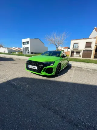 ✅REVISIÓN RECIÉN PASADA EN AUDI CON FACTURA. ⛔️NO NEGOCIABLE ⛔️NO CAMBIOS ✅PINTURA ORIGINAL Y NINGÚN REPINTADO DEMOSTRABLE. Audi Rs3 Sportback 2.5 TFSI 400cv quattro 5p S tronic Amarillo Piton Metalizado noviembre 2023 y con garantía de Audi hasta noviembre de 2026,comprado en concesionario Audi demostrable,prácticamente está a estrenar,tiene todos los extras posibles menos frenos cerámicos y alerón de carbono por lo demás tiene todo,incremento de velocidad a 280 km/h,sistema de escape deportivo RS,paquete RS Plus Interior en rojo y asientos eléctricos con memorias y con masaje,paquete negro piano en el exterior,cámara trasera,retrovisores con sensores de proximidad,head up display,techo eléctrico,maletero eléctrico,sonido bang&olufsen,si te interesa te puedo pasar la lista de extras por whatsap.RS3,RSQ3,RSQ8.