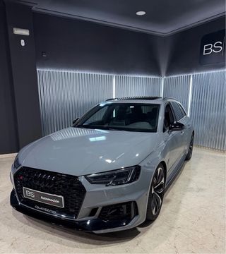 Llevate este Audi RS4 contigo. Vehiculo NACIONAL con tan solo 2 propietarios y full equip. Se encuentra en perfecto estado y con las revisiones hechas en servicio oficial. 73000km Sus extras más destacados son: - Drive select - Techo panorámico - Ajuste de asientos delanteros con mémoria - Llantas de aleación ligera x20 - Asientos calefactables delanteros y traseros - Keyless-Entry - Spoiler delantero - Inserciones de aluminio - Asistente de mantenimiento de carril - Sistema de limitación de velocidad - Sistema high - Sistema de aparcamiento asistido - Asistente cambio de carril - Matrix-Bearn - Conjunto de pilotos posteriores en LED - Velocidad de crucero adaptada hasta 210 - Paquete BANG¬OLUFSEN - CAMARA 360 - Head-up display - Paquete de óptica negro brillante - Pinzas de freno en rojo - Paquete de diseño RS - Diferencial y escape RS