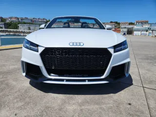 Audi TT RS Roadster PERFORMANCE PARTS 400cv -Año 11/2016 y 109.000km CERTIFICADOS #TRANSFERENCIA INCLUIDA y 1 AÑO DE GARANTÍA PREMIUM -Vehículo ÚNICO EN ESPAÑA con MANTENIMIENTO EN SERVICIO OFICIAL AUDI -IMPECABLE ESTADO, motor, mecánica, chapa, pintura, interiores, PERFECTO #EQUIPAMIENTO *KIT PERFORMANCE PARTS (Splitter frontal, canards, faldones, difusor trasero y alerón) *Motor gasolina 2.5 TFSI 400cv *Cambio automático S-TRONIC 7 (doble embrague) con levas en el volante *Tracción integral QUATTRO *Suspensión magnética MAGNETIC RIDE *Frenos deportivos RS con pinzas en rojo y discos perforados *Escape deportivo RS con válvula *Incremento de la velocidad máxima a 280Km/h *Llantas 20” AUDI SPORT PERFORMANCE *Faros MATRIX LED oscurecidos adaptativos y ópticas traseros LED con intermitentes dinámicos *Capota de lona retráctil *Deflector de viento eléctrico *Baquets RS en piel con costuras rojas, eléctricos y calefactables *Volante achatado RS multifunción en piel y alcántara *Sistema de sonido BANG & OLUFSEN 680W *Cinturones en rojo *Inserciones interiores en fibra de cabrono *AUDI VIRTUAL COCKPIT (cuadro de instrumentos digital) *AUDI DRIVE SELECT (Dynamic, Confort, Individual y Auto) *Navegación MMI TOUCH 3D, APPS, conectividad WLAN, USB, BT-AUDIO, AUX *KEYLESS GO (acceso sin llave y arranque a botón) *AUDI PHONE BOX (carga inalámbrica de teléfono) *HOMELINK (Mando para apertura de garaje) *PARKTRONIC 360 con cámara de visión trasera *ASISTENTES: ACTIVE LANE ASSIST (asistente de salida de carril), HOLD ASSIST (ayuda en pendientes), Reconocimiento de señales de tráfico *Climatizador automático confort *Bluetooth y control por voz *Retrovisores abatibles eléctricamente y calefactables *Sensores de luces/lluvia/presión de neumáticos *Control de velocidad de crucero *Sistema auto Start-Stop *Ordenador de abordo *Sistema de alarma antirrobo *Freno de mano eléctrico *ISOFIX #VALOR PARA CAMBIOS 56.000€ -Se acepta prueba mecánica -Anuncio no vinculante, puede contener err