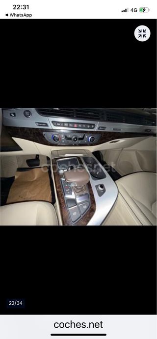 Se vende AUDI Q7 3.0 V6 TDI 272 cv QUATTRO TIPTRONIC 7 PLAZAS en un estado IMPECABLE, con todas las revisiones al día, ruedas nuevas, con 234.500 Kms. EQUIPAMIENTO: Paquete exterior S line, Asientos de confort. Techo panorámico, Suspensión neumatica, Modos conduccion, Ajuste eléctrico en longitud, altura e inclinación. Ajuste lumbar eléctrico. Asientos calefactados. Asientos con ventilación y masaje, Volante calefactable, Bola remolque electrica, Asistente de visión nocturna - Night vision. Con cámara de imagen térmica integrada, Audi phone box, Head-up display, Climatizador automático de cuatro zonas, Cristales dobles insonorizantes y aislantes, Faros Audi Matrix LED, Iluminación de ambiente, Audi Park Assist. Cámaras de entorno. Audi side assist. Audi pre sense rear. Cross traffic. Exit warning. MMI navegación plus con MMI Touch,... PARA MÁS INFORMACIÓN PUEDE PONERSE EN CONTACTO SIN COMPROMISO.