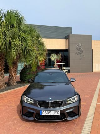 BMW M2 -Vehículo nacional -Certificado No siniestralidad. -Año 2017 -110.000Kms - 370cv -Etiqueta medioambiental C -Mantenimiento recién hecho -Neumáticos nuevos -Color:Mineral Grey Metallic Extras: -Espejos retrovisores exteriores con función de plegado eléctrico y antideslumbramiento. -Sistema de navegación Professional -Asientos calefactables -Asientos deportivos con reglaje eléctrico y memoria -Driving Assistant -Keyless go -Techo solar eléctrico -Control crucero -Apple car play -Difusor trasero de carbono -Spoiler trasero de carbono -Alerón de carbono -Control de distancia de aparcamiento (PDC) -Sensor de lluvia y luces automático -Cámara marcha atrás - Añadido delantero - Espejos tipo m4 REVISONES EN BMW CON LIBRO DIGITAL. 3 AÑOS DE GARANTÍA EN BMW OFICIAL. TODAS LAS MODIFICACIONES DE ESTÉTICA ESTÁN HOMOLOGADAS EN FICHA TÉCNICA, MOTOR Y CAJA NUNCA MODIFICADOS