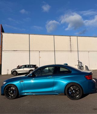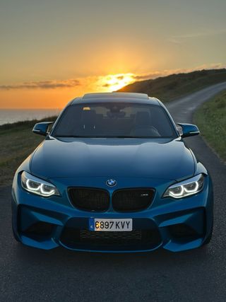 BMW M2 F87 LCI • NACIONAL • MANUAL. Todos los extras excepto Apple Car Play. -Asientos electricos calefactables con memoria. -Techo solar -Camara trasera y sensores de aparcamiento -Sistema de sonido Harman Kardon -Advertencia de colision y cambio de carril -Paquete completo M Performance Carbono: Alerón carbono, difusor trasero carbono, difusores laterales carbono, deflectores delanteros carbono. -Llantas BMW M Performance 763M 19” Jet Black originales. Coche muy mimado, sin golpes. Durmiendo siempre en garaje Mantenimientos al dia con libro sellado en la BMW.