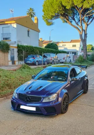 Mercedes Benz C220 AMG Coupe en perfecto estado, con ITV hasta mayo 2026 y equipado con Body Kit C63 Black Series homologado he incluido en ficha técnica: -Tapiceria cuero, tela -Techo solar -Asientos deportivos -Navegador -Faros bixenon -Climatizsdor -Llantas de aleación