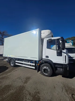 Iveco eurocargo frigorífico congelación elevalunas eléctrico cierre centralizado aire acondicionado ordenador de abordo conexión teléfono móvil termografo equipo de frío termoking T600R. Dimensiones interiores de la caja de carga Largo 5070mm Ancho 2185mm Alto 2165mm 10 palets europeos. Puerta elevadora dhollamdia retráctil de 1500kg. Garantia cinematica según condiciones contrato específico Impuesto no incluidos en el precio.
