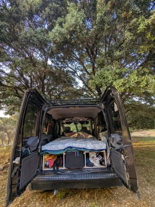 Camperizacion homologada , agua caliente, ducha interior, armario, nevera compresor, calefacción, TV, revisada de motor, motor eterno 2.5 diesel, distribución, bomba agua, frenos, cubiertas nuevas, camperizacion con 4 años y 0 problemas, batería secundaria lifepo4, escucho ofertas. Itv en vigor! Mucho dinero invertido.
