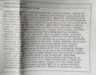 Vito 638 del 97 Con dos juegos de llaves 98cv atmósferica Tiene un somier con una cama de 90. Tengo la fila de asientos de enmedio, faltaría la última fila de 3 asientos. Se podrían entregar oscurecedores térmicos recién comprados por 150€ más. Tiene radio Bluetooth con CD discos. Los altavoces son nuevos (marca Pioneer). La vendo porque no ha pasado la ITV (la pasa cada 6 meses), la lista de defectos de la ITV está en fotos, lo bueno que sabes todo lo que hay que hacerle. En papeles está puesta como 8 plazas. Arranca y funciona. Tiene aire acondicionado. Cambio de nombre por gestoría y la furgo se tiene que ir en grúa. La nevera, las sillas y la mesa no están incluidas. El capó no se abre. Habrá que venir con un mecánico para que abra el capó.
