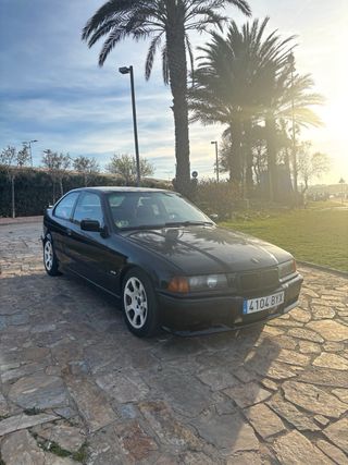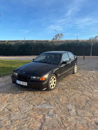 BMW e36 318ti año 2001 motor M44 190mil kilómetros Pegatina B para entrar en ciudades. El coche tiene muchísimas cosas echas. -puente trasero con silenblocks powerflex -grupo corto abierto -frenos delanteros rayados brembo cambiados hace 3mil kilómetros. -bujías cambiadas hace 3mil kilómetros. -Bateria nueva 3años de garantía -manguitos de radiador silicona. -neumático de repuesto nuevo -Radio applecar y androidauto, -refuerzo en las copelas delanteras -suspensión roscada maxpeedingrods regulable en altura y dureza en ambos ejes. -volante con piña extraible sparco -lleva puente trasero de discos -shortshift para una conducción más dinámica y seguro que de algunas cosas me olvido. El coche va de fábula, tiene un andar espectacular y se nota que es una buena unidad, tiene ITV hasta el 30/12/26. No está homologado, entrego la piezas de serie para pasar ITV. Como pegas que tiene el coche son 2 cosas, el asiento del copiloto se rompió y no se reclina y aveces se acelera en realenti un poco, cosas de fácil solución pero no tengo tiempo para ello, fue muy cuidado y no lo vendo por necesidad. No pierde aceite ni consume aceite, tampoco pierde ni consume anticongelante, mecánica impecable y un coche que vale la pena si no quieres romperte la cabeza. Con su compra además de las piezas para pasar ITV doy un juego de llantas de e36 en 15” con los 4 neumáticos nuevos. El coche está en Valencia.