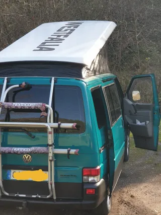 2.4 diésel calefacción estacionaria, porta bicicletas, techo Westfalia, nevera, asiento cama con colchón, mesa de origen etc... Pintada entera y saneada... Correa distribución.. Bomba... Filtros... Etc recién cambiado... Para cambios valor más alto... Podría aceptar moto de trail BMW gs