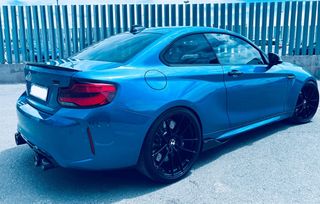 bmw M2 performance original coche nacional comprado nuevo absolutamente todos los mantenimientos en bmw, última revisión completa recién realizada con sus facturas disponibles pintura original nunca se ha pintado nada tratamiento ceramico mas de 20.000€ en extras originales bmw performance de serie suspension M performance regulable en altura y dureza escape M performance titanio con mando para abrir las valvulas, colas en carbono llantas oz racing HLT LEGERA en 20” neumaticos pirelli P-zero nuevos kit exterior completo carbono original interior completo en carbono y alcantara volante M performance car play carga inalámbrica tlf sonido harman/kardon estriveras iluminadas M performance muchos mas extas... el coche esta completamente impecable se puede revisar sin problema solo gente realmente interesada gracias