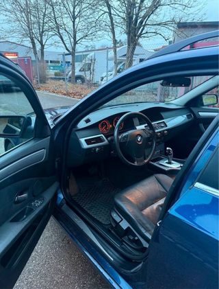 **TODO HOMOLOGADO Y METIDO EN FICHA** Se vende BMW 525i 2.5 de 218cv. del año 2005 -Asientos de tela en color negro, -Techo recien tapizado y paneles en cuero color negro. -Climatizador bizona. -Llanta en 19 ̈ con doble medida + neumaticos nuevos. -Suspensión REBAJADA. -Escape tipo M5. -Paquete exterior M. -Luces diurnas. -Todos los mantenimientos al día. -Bujías y bobinas nuevas. -Recién pintado en el color San Marino Blue. -Posibilidad de entrega en todo el territorio nacional. **UN AÑO DE GARANTIA** **TODO HOMOLOGADO Y METIDO EN FICHA**