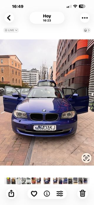 BMW Serie 1 120d 3p (E81) – 177 CV Vendo BMW Serie 1 120d de 3 puertas, año 2007, motor diésel de 177 CV, muy fiable y con un gran equilibrio entre prestaciones y consumo. Tiene 310.000 km, la mayoría de ellos en carretera, y funciona perfectamente. ⸻ 🔧 Datos principales: • Motor 2.0 diésel 177 CV • Cambio manual • Año: 2007 • Kilómetros: 310.000 km • Tracción trasera • ITV en vigor ⸻ ✨ Equipamiento destacado: • Paquete M interior y exterior(volante M, detalles deportivos...) • Llantas BMW de aleación • Pantalla multimedia con Apple CarPlay • Cámara de marcha atrás • Volante multifunción • Climatizador automático • Faros antiniebla • Interior cuidado ⸻ 🛠️ Mantenimiento y estado: Coche bien mantenido, usado a diario sin problemas. Mecánicamente va fino, arranca a la primera y no da fallos. Interior y exterior en buen estado acorde a los kilómetros y la edad. Siempre ha dormido en garaje. ⸻ 📌 Ideal como coche diario, primer BMW o para quien busque un compacto deportivo con tracción trasera y buen equipamiento. Se puede ver y probar sin compromiso. Precio algo negociable.