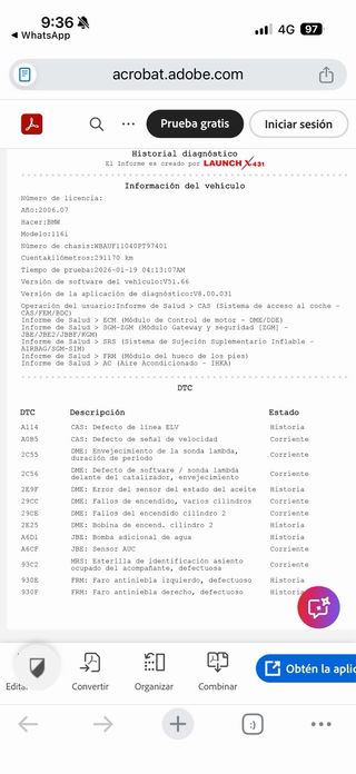 se vende bmw en perfecto estado con todos los mantenimientos hechos cadena de distribución correas damper aceite y filtros estado 10/10 no se aceptan cambios por nada ni el precio es negociable el coche esta para hacer muchos kms sin problema y tiene muchos extras