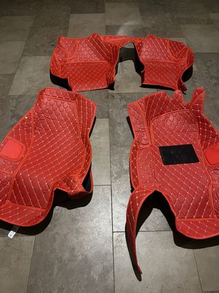 Juego de alfombrillas de coche en color rojo para Seat Ateca. - Diseño acolchado con costuras blancas. - Material de alta calidad.