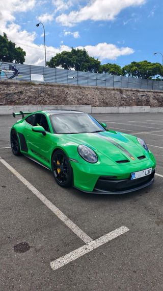 VEHICULO NACIONAL COMPRADO NUEVO EN CENTRO PORSCHE A CORUÑA PROTECION PPF COMPLETO TODAS LAS REVISIONES EN CONCESIONARIO OFICIAL ( porsche ) GARANTIA APPROVED 5/2026 EQUIPAMIENTO : Depósito de Combustible de 90 litros Sistema de frenos cerámicos Porsche Ceramic Composite Brake (PCCB) Llantas pintadas en color Negro (satinado) Sistema de elevación del eje delantero Techo ligero (Lightweight) de Carbono Paquete interior de Carbono (alto brillo) Paquete Club Sport con un extintor homologado adicional (contiene 1 kg de a.... Tapa del compartimento portaobjetos en Race-Tex con escudo Porsche Paquete Interior con costuras y bordados en color de contraste Luces principales LED en color Negro incluy. Porsche Dynamic Light System (... Paquete Sport Chorno incluye preparación para lap trigger Esfera del cuentarrevoluciones en color Verde Lizard Luces traseras Exclusive Design Sistema de sonido BOSE® Surround Sound System Juego de adhesivos Motorsport en color Negro Logotipo lateral "PORSCHE" en color Negro Cinturones de seguridad en color Verde Lizard Sistema de ayuda aparcamiento (ParkAssist) trasero con Cámara de marcha a... Espejos retrovisores antideslumbrantes (interiores y exteriores) con sensor de ... Asientos envolventes Integrales (Bucket) Paquete de almacenaje Esfera del cronómetro Sport Chrono en color Verde Lizard SE RUEGA SERIEDAD