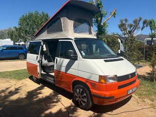 Volkswagen Caravelle 2.0 Tdi 150 CV DSG del 2018 con 65000 kms homologada para 5 plazas, control crucero, espejos plegables y calefactables, sensor aparcamiento trasero. Ruedas Originales California 17 pulgadas con neumáticos Continental Van Contact Eco, las delanteras recien cambiadas, las traseras con 15000 kms. Portabicicletas Volkswagen 4 bicicletas. ITV hasta 01/27. Techo solar Atlas Camper con dos tiras led y 4 cargadores USB, colchón 5 cms. Toldo Fiamma F45S Instalación Eléctrica: Batería Gel Eleksol 100 AH Placa Solar Monocristalina Eleksol 200 watios Smart Solar Victron MPPT 75/15 Booster Victron Smart 12/12 18A con interruptor debajo del asiento. 8 tomas USB repartidas por la furgoneta, desconectador de corriente de la segunda batería. Luz interior. Calefacción estacionaria autoterm 2D. Interior: Asientos delanteros giratorios, tercera fila asientos piel con isofix, cortinillas originales Volkswagen y aislantes térmicos para todos los cristales, armario con nevera mobicool FR 40, suelo vinilo efecto madera, armario debajo asientos traseros. Mosquitera puerta lateral. Armario Trasero: Cocina dos fogones gas, depósito agua 55 litros, bomba de agua shurflo 7 litros con interruptor y vaso de expansión, calentador kampa geyser, fregadero con depósito aguas grises debajo, toma ducha exterior y cortinilla para ducharse. Todo homologado excepto armario trasero que se desmonta con dos tornillos y una toma rápida la corriente. Cualquier pregunta no dudes en ponerte en contacto, no encontraras algo mas equipado. Camper california caravana camping transit ducato marco polo westfalia jumper partner crafter