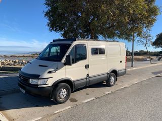 iveco daily 29L20. motor 2.3hpi homologada furgon vivienda para 4plazas. perfecto estado de todo color camel y negro texturizado. 2 plazas delantera giratoria dos plazas traseras claravoya dometic 96x60 ventanas laterales y trasera todas con mosquiteras y oscurecedor. Mueble de cocina con fregadero y deposito 30litros mas deposito agua sucia exterior, nevera compresor extraible con guia. mesa extraible, cama trasera 184X165. calefaccion estacionaria, muchos armarios para almacenaje. deposito 55litros con ducha en parte trasera. muy bien aislada 4cm aislante mas placha de fibra y madera suelo tarima antihumedad c5. perfecta de chapa y motor mantenimientos hechos, distribucion hecha hace un año. Nunca a dado ninguna problema muy cuidada. no consume nada de aceite ni cosas raras . consumo medio 8 Litros. placa solar 180w doble bateria y rele de carga con separador. camara marcha atras