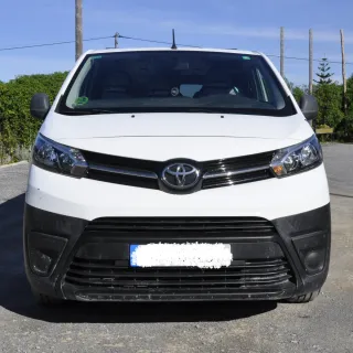 Toyota proace verso Camper homologada como turismo con accesorios. 2 años de garantía en motor, chasis y electrónica ya que ha pasado todas las revisiones en la casa oficial Toyota. Muy suave en carretera con buena respuesta motor y con un consumo bastante bajo (7l a los 100 en carretera) -cama plegable convertible en asiento con mesa plegable. -placas solares con batería de litio de 50ah con posibilidad de carga con batería del coche mediante un botón en caso de que se necesite. -tanque de agua de 25l con ducha portátil. - capacidad de carga debajo de la cama con todo el ancho y largo de la furgo, perfecta para cargar material deportivo como tablas de windsurf o surf. Suelo y laterales impermeables. Hecha a medida para ser mi coche diario a la vez que mi Camper de fin de semana y mi vehículo para surfear y hacer windsurf cada día, con todas las comodidades necesarias para ello. Se vende por cambio a todoterreno debido a un cambio de vida. Me he mudado al campo.