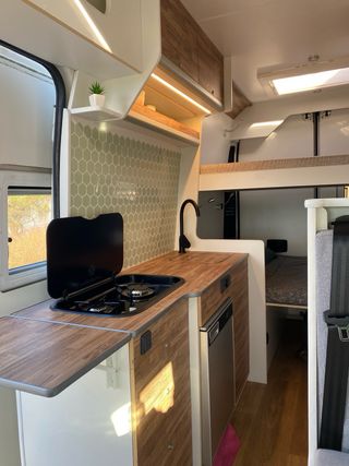 Vendemos nuestra camper, hecha a medida por varios profesionales del mundo camper y automovilismo - segun mi concepto y diseño. Especial: Calefaccion y cocina con diesel - Solar de 220Wp, 200Ah bateria de Litio, 1200W inverter Victron, ventanas de cristal de verdad - y muuucho mas detalles especiales en el interior y exterior! El chasis es del 10/2012 y fui camperizado en 2017/18. Si te gusta lo que vez en las fotos, contactame y te puedo facilitar mas info y tambien videos. Aun estamos viajando mucho con ella por la peninsula - con suerte por tu zona.