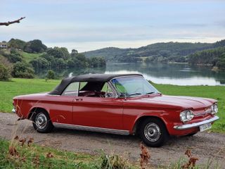 Chevrolet Corvair Monza Convertible (1963) Descapotable USA muy difícil de ver en Europa. Importado desde USA con matrícula histórica e ITV vigente hasta 2027. Fue utilizado por la cantante Rosalía para un spot publicitario. Conservado en estado original, perfecto para coleccionistas. MOTOR & RENDIMIENTO Motor bóxer (flat-6) refrigerado por aire Cilindrada: 2.4L (145 cu in) Potencia aproximada: 102 CV (versión Monza de la época) Carburación: doble carburador Tracción trasera (RWD) Motor situado detrás del eje trasero (Característica única del Corvair) Arranque y ralentí estables, sonido clásico muy suave. TRANSMISION Caja automática Powerglide 2 velocidades Cambio suave y fiable CHASIS & CONDUCCION Suspensión independiente en las cuatro ruedas (algo muy adelantado para 1963) Dirección suave típica de los descapotables americanos Frenos originales en buen estado Excelente comportamiento para un coche clásico. EXTERIOR Color exterior: Rojo clásico Pintura y cromados bien conservados para su edad Capota descapotable en muy buen estado y mecanismo funcional Llantas y tapacubos originales de época Carrocería en estado original, no restaurada. INTERIOR Color interior: Rojo vino Tapicería en muy buen estado general, original Paneles, mandos y detalles metálicos bien conservados. Salpicadero completo y de origen Volante rojo original del modelo Radio clásica instalada (funcional) DOCUMENTACION Matrícula histórica ITV hasta 2027 Vehículo con toda la documentación lista para transferir. No acepto cambios. Solo venta. Facilitamos transporte en grupaje con empresa profesional si es necesario a cualquier punto de España. Documentación de importación conservada.