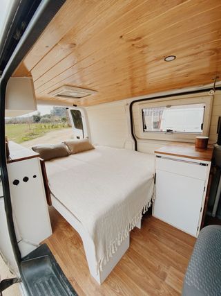 Cuidada y camperizada, tratada con mimo.. Distribucion y reten cigueñal hecho, cambios de aceite, filtros, liquidos freno.. tambien. ruedas nuevas. tambien los amortiguadores y los frenos completos. Ahora lleva un sillon conductor y sillon copiloto. Camperizada por los chicos de #vanboleo entre algunas cosas la camperización consta de.... - Calefacción estacionaria.. Doble batería (nueva) e instalación.Luces, inversor.. - Nevera de puerta, ducha.. claraboya, ventana… extras.. - Muebles bonitos y prácticos.. cocina..etc - Bien aislada - Base Asiento giratorio. Toda la camperizacion está homologada. Muchas gracias