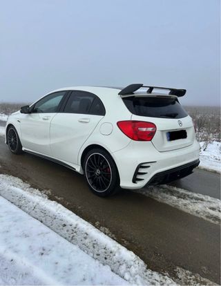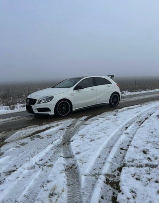 Pongo a la venta mi Mercedes Clase A del 2013 (156cv) porque me toca cambiar de coche, pero me da pena deshacerme de él por lo bien que va y lo mucho que llama la atención. Tiene 209.000 km, que para este motor no son nada ya que la mayoría se han hecho en viajes largos por autovía, nada de maltratarlo por ciudad. Lo mejor que tiene es el look: lleva el kit óptico del A45 AMG con unas llantas GT1 de 19" que le quedan increíbles. También le puse el alerón de labio de Maxton Design y el escape deportivo del A250 Sport; suena con ese toque racing pero sin ser nada exagerado ni molesto para viajar. Por dentro es un lujo, con los asientos de cuero calefactables que en invierno son una maravilla y el Bluetooth para llevar tu música. El coche está listo para subirte y disfrutarlo, si buscas un Clase A que se vea diferente al resto y con un toque deportivo serio, ven a verlo porque en persona gana muchísimo.