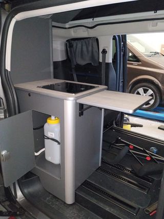 se vende furgoneta camperizada, ideal para tus viajes, con mueble Camper, cristales tintados, 7 asientos y barras de techo, pocos kilómetros ITV RECIÉN PASADA hasta 2027, revisión recién hecha, aceite cambiado, etc.