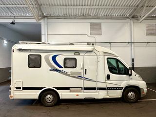 Autocaravana perfilada. Muy compacta. En un estado impecable, mantenimientos al día. Calidad alemana que se nota en la construcción y el aislamiento térmico. - Fiat Ducato 2.3 JTD de 130cv, transmisión por cadena. - Dimensiones 599 x 272 x 215 cm - 107.000km. - Garaje grande, escalón electrico, toldo, aire acondicionado en cabina, baño muy amplio. - Remis con oscurecedor y mosquitera en todas las ventanas y claraboyas, mosquitera en puerta. - Cierres de seguridad Thule. - Depósito de agua limpia de 114L y aguas grises de 90L. - Portabicicletas, placa solar con regulador Victron (2021), baca con escalera. - Ruedas delanteras “al season” con 5.000 Km. - Calefacción y agua caliente por gas Truma Combi, Cocina con tres fuegos, y nevera Dometic trivalente. - Espacio para dos bombonas de propano. - Parabólica. - Cama francesa de 135x195 cm con acceso al garaje tipo canapé. Segunda cama desmontable en comedor para una persona. Mucho espacio de almacenaje en habitáculo. Con alfombra protección del suelo original. Tapicería de asientos renovados en 2021. Homologada para 4 viajar. Ideal para una pareja o una familia de tres aventurera. Siempre en garaje.