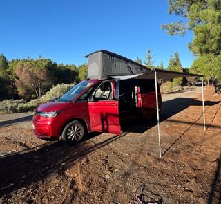 Vendo Volkswagen California T7 Beach Tour 2.0 TDI 110 kW (150 CV) con cambio automático DSG. Comprada en noviembre de 2025 en Canarias. Tiene solo 6.500 km reales, está prácticamente nueva y muy cuidada. Color: Rojo Fortana metalizado | Interior: Raven Extras destacados: techo elevable, Digital Cockpit Pro, CarPlay/Android Auto inalámbrico, climatizador Air Care Climatronic, sensores de aparcamiento delante y detrás, luces traseras LED y ventanas correderas a ambos lados. 5 plazas. Se puede ver y probar sin compromiso.