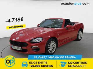 ¡¡ENTREGA INMEDIATA!! Condiciones especiales FyCSE. Ofrecemos financiación para tu nuevo coche (sujeta a aprobación), hasta 30.000 €. ¡Pregúntanos! Fiat 124 Spider Lusso, manual, en color ROJO PASSIONE en estado de REESTRENO, prácticamente sin uso, sin un solo repintado, con libro de revisiones sellado y al día, TODAS PASADAS EN CONCESIONARIO OFICIAL FIAT (la última en septiembre de 2025). Pídenos enlace para ver todas las imágenes, vídeos y documentación del coche. Precio al contado: 23.900 € Precio financiado*: 23.400 € *Descuento de 500 euros por financiar un mínimo de 20.000 a 48 meses. Para otras cuotas, consultar condiciones. Atendemos con CITA PREVIA. UN AÑO DE GARANTÍA ADICIONAL (2) SI PERTENECES A FyCSE CONECTACARS, especialistas en híbridos, PHEV y eléctricos. Visítanos en la web de CONECTACARS. Disponemos del vehículo que buscas y si no lo tenemos, te ofrecemos hacer el pedido a la carta a un precio inmejorable. Siempre mostramos TODA la documentación de procedencia del vehículo y sus revisiones, con la máxima transparencia. ¿Tienes dudas sobre el estado del coche? Envía un perito o empresa de revisiones y obtén además un descuento en tu nuevo coche. Ofrecemos transporte gratuito dentro de la Comunidad de Madrid y disponemos de servicio de transporte al resto de la Península y Baleares. CARACTERÍSTICAS: - Etiqueta C - Garantía de 1 año, ampliable a 2 - Vehículo sin accidentes ni repintados - Libro de revisiones sellado por SO EQUIPAMIENTO: - Capota en negra - Acabado Lusso - Cuero negro con asientos calefactados - Paquete Premium: cámara trasera, acceso y arranque sin llave y navegador - Paquete radio: pantalla táctil, radio digital y mandos en volante - Sensores traseros de aparcamiento Anuncio sujeto a variaciones. Oferta no vinculante y podría contener errores. Llámanos si necesitas información más específica.