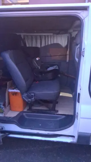 Se vende renault trafic de 2010, chasis largo. Motor 2.0 con 115 cv, motor de cadena muy resistente con todos los mantenimientos hechos (embrague cambiado, bomba del agua, revisión de la cadena, pinzas de freno, etc). Todo con un historial de las facturas. Pequeños detalles estéticos de chapa. Camperizacion de hace 1 año: - placa solar de 120w - bateria de litio de 100A - nevera compresor 12v - fregadero y grifo de cocina - Bomba de agua automatica - cama de 2m - 40L de agua sucia y 40L de agua limpia 9 plazas en ficha técnica, pero solo 3 disponibles.
