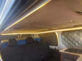 - 4 PLAZAS TODO HOMOLOGADO - Aisliamiento completo paredes, techo y suelo con kaiflex 20mm. - Suelo vinilico - Bases piloto y copiloto giratoria - Asiento trasero base Aguti con reposacabezas y tapizado misma marca. - 2 ventanas abatibles marca Carbest con oscurecedor y mosquitera, una en salon otra en puerta corredera. - Claraboya 40x40 Dometic con oscurecedor y mosquitera. - Calefacción estacionaria 8 KW Diesel marca NordKapp con centralita de control sobre reposacabeza trasero. - Instalción 4 puntos de luz led dimable. - Placa solar 12v 200w, regulador vitron, 2 baterias 86amp 12v. - Nevera 40l 12v marca Lg en mueble cocina. - Instalación de agua a presión con vaso de expansión marca Seaflo. - Depósito agua limpia 110l paso rueda, y sucias 90l en bajos, pantalla de nivel entrada furgon. - Ducha pequeña con grifo extensible, preinstalción boiler o calentador. - Camara trasera y asientos, 3 personas dormir. + Info preguntar sin compromiso!!!