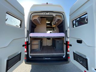 Furgoneta Mercedes Sprinter camperizada,motor 2500,Cdi,200cv Es la grande ideal para estancias largas. la cama es de 150cm,y se levanta y hay sitio para llevar moto, cocina ,lavabo,ducha...etc las vistas las pones tú.