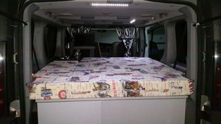 Se vende Opel vivaro tour del 2006 en muy buen estado para sus años, ahora está para 5 plazas para poder hacer cama pero se da el asiento del medio total 7 plazas. Lunas tintadas, aislamiento térmico para todas las lunas de la furgoneta. Portón trasero, Etiqueta medioambiental B, está como turismo y pasa ITV cada año no cada 6 meses y puede circular a 120.Porta bicis , segunda batería enchufes de 12 y 24v .un mueble desmontable con grifo con deposito agua limpia y sucia. Armario de almacenaje en la parte de detrás, Calefacción estacionaria con programación que hay que revisar. Neumáticos en perfecto estado, discos y pastillas nuevas , ITV recién pasada. Bola de remolque Camper. Camperizada. Más fotos o vídeo escríbe. 659176944