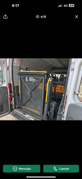 Vehículo adaptado con plataforma elevadora y 2 sillas de ruedas. 9 plazas o 6+2 sillas de ruedas. Motor recién cambiado por uno reacondicionado. Aire acondicionado en techo de parte trasera. Todo recién revisado. Pasa ITV al año