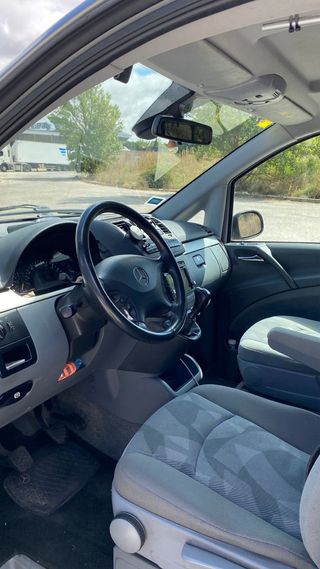 ATENCIÓN: Se vende desde empresa así que el precio incluye IVA. Si eres autónomo o empresa te lo desgravas (11.570€ sin IVA) Mercedes Benz Viano Motor CDI 2.2 150 caballos Año 2005 292.000km Diesel, manual, 6 marchas Version Larga (4.99m) Altura 1.87 (cabe en prácticamente cualquier parking de España) Anchura 1.90 Color Negro metalizado, cristales traseros tintados de fabrica. Tiene extras como la segunda puerta lateral, Tempomat (velocidad automática en carretera) y limitador de velocidad para ciudad. Equipo de sonido Alpine radio/CD/mp3/Bluetooth con altavoces mejorados y subgrave bajo el asiento del copiloto (sonidazo) Perfecta de motor, sin ruidos ni vibraciones. Mantenimientos hechos regularmente. ITV pasadas siempre sin problemas. Matriculada como vehículo mixto así que se pasa cada 6 meses, pero siempre a la primera. En carretera va como la seda. Súper estable y segura. Si pones el automático en carretera no baja velocidad ni siquiera subiendo los puertos. Tracción trasera y gran giro. Muy fácil de aparcar. Sensores delanteros y trasero para facilitarlo aún más Carrocería algo rozada en laterales y frontal. Plásticos del salpicadero un poco deteriorados (le pasa siempre a este modelo con el paso de los años, pero en Temu o Aliexpress se puede pedir todo en conjunto muy barato y se puede cambiar fácilmente) Se entrega lista para 7 plazas: 2 asientos delanteros Banco doble + individual 2 asientos traseros (estos apenas usados 5-10 veces, ya que siempre se ha usado para 5 plazas y carga). Muy flexible en cuanto a configuración de plazas y asientos (se pueden poner enfrentados también) Ideal para usar para pasajeros 5-7 personas) y fácilmente camperizable con kits ya hechos desde 600€ a 2000€ según lo que quieras hacer. Perfecta para llevar bicis y mil cosas mas. Transmisión cambiada el año pasado (única avería que me ha dado), así que de eso te puedes olvidar. Muchos kilometros por delante (estos motores hacen fácilmente 700.000 km y más)