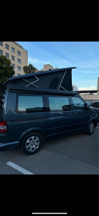 Tu casa sobre ruedas lista para viajar! Se vende Volkswagen California T5 del año 2006, camper original de fábrica por Westfalia, con motor 2.5 TDI de 130 CV y cambio automático Tiptronic, ideal para largos viajes con total comodidad. PRECIO NEGOCIABLE Perfecta para escapadas de fin de semana o aventuras largas, con todo lo necesario para vivir y dormir con total independencia. ✅ Ficha técnica: Marca / Modelo: Volkswagen California T5 Motor: 2.5 TDI – 130 CV – 5 cilindros Cambio: Automático Tiptronic Año: 2006 Combustible: Diésel Kilómetros: 260.000 Plazas homologadas: 4 viajar / 4 dormir ITV al día: Sí , proxima Marzo 2026 Consumo medio: 8–9 l/100 km aprox. Tracción: 4Motion Historial de mantenimiento disponible Equipamiento Camper (Westfalia original): Techo elevable manual con cama superior (colchón incluido) Asiento trasero convertible en cama doble inferior Cocina con 2 fuegos a gas Fregadero con grifo y depósito de aguas limpias / grises Nevera compresor de 42L Armarios integrados, cajoneras y espacio de almacenamiento Mesa interior plegable y extraíble Asientos delanteros giratorios (convierten el comedor) Cortinas opacas originales + oscurecedores Iluminación interior ⚙️ Extras y detalles técnicos: Aire acondicionado Calefacción estacionaria independiente (Webasto) Control de crucero (Tempomat) Elevalunas eléctricos Cierre centralizado con mando Dirección asistida Radio CD + AUX / USB Toma de corriente 12V y 220 Batería auxiliar con relé separador Enchufe exterior para conexión a camping (220V) LA VENDL CON MÁS EXTRAR , preguntar.