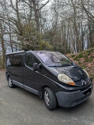 Renault Trafic del 2007 camperizada y lista para viajar. Tiene 230.000 km pero está muy bien cuidada. Tiene radio con USB y bluetooth y aire acondicionado. Camperización (todo homologado): - Cama de 160, con colchones nuevos comprados en 2023. - Oscurecedores de todas las ventanas. - Segunda batería y convertidor. Enchufes a 220V y a 12V. - Asientos giratorios (los dos). - Portabicis (lo tenemos guardado). - Bola de remolque. - Toldo Fiamma F35. - Luz led. Mecánica: - Mantenimiento al día: batería cambiada en Abril, amortiguadores en 2023, ITV pasada sin problemas en Abril. - Distribución por cadena. - Motor reprogramado para que tenga más potencia.
