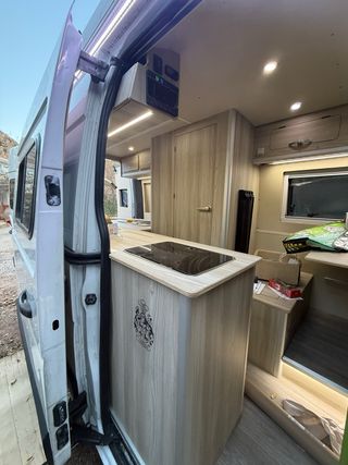 Camperizacion a estrenar recién terminada, full equipe de todo... ver y probar!!! -cámara marcha atrás -Toldo Fiamma iluminado -Asientos giratorios. -para dormir 4 personas. -batería de 300 Amperios -Placas solares de 400W - Calefacción Autotech 3D -cocina dos fuegos y frigorífico de 85litros -Inversor de 1200 W -Booster -ventanas con oscurecedor y mosquitera -Duchas y Wc acasette -Iluminación full de ambiente por dentro y por fuera. -Depósito de aguas limpias de 200 litros y el de sucias 100 litros con electroválvula de vaciado. -Calefacción Autotech 2200kw -preparado ducha exterior y peldaños exterior. Todo homologado según normativa e ITV en vigor Ruedas nuevas.🆕 Una Auténtica pasada a capricho 😻