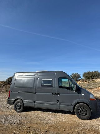 Renault Master 2.5 dCi del 2008, camperizada y pensada para ser 100% autónoma.Exterior en gris mate, look discreto y elegante, perfecta para free camping sin llamar la atención.Pantalla multimedia con carplay inalambrico i gps. Techo alto, ventanas laterales con oscurecedores. Decoración trasera con vinilo de pinos que le da un toque único.Interior homologado (cambio de ficha a 3500 kg MMA para mayor carga útil):Cama fija trasera de matrimonio (180x130 cm aprox.) cómoda y siempre montada. Cocina completa con fregadero, grifo y espacio para cocina portátil. Ducha interior y WC portátil Thetford. Mucho almacenamiento: cajones extraíbles, armarios altos, garaje trasero enorme con suelo de goma y luces LED. Ventilador en techo para ventilación. Iluminación LED completa, tomas USB y 12V. Bateria litio 100Ah con booster 30a, 400w de placas solares i mppt 100/30 todo marca victron Aislamiento completo (Kaiflex) y calefacción estacionaria Webasto (funciona perfecta en invierno). Mesa interior y asiento lateral para comer o trabajar. Garaje trasero gigante: cabe bici, esquis, snowboards, sillas, mesa exterior, escalera telescópica, bidones, etc. Todo bien organizado.ITV pasada y en vigor hasta 2026. Mantenimiento al día, Motor fiable y económico (consumo real 8-10 L/100 km).Ideal para pareja o viajero solo que busque libertad total. Ha recorrido miles de km sin problemas y está lista para seguir rodando. Perfecta para escapadas a la nieve. Para más información, preguntar por aquí. Precio negociable