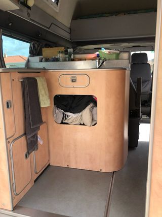 Se encuentra en perfecto estado. Asientos giratorios, cubre ventanas,mueble a medida detrás del asiento del conductor, mesa oculta en el suelo hecha a medida, calefacción estacionaria, Aire acondicionado ,porta bicicletas, baca, tubería hecha a medida para almacenar agua, colchón a medida con espuma de alta densidad. Los asientos traseros están desmontados se entregarían también. Gente interesada, gracias.