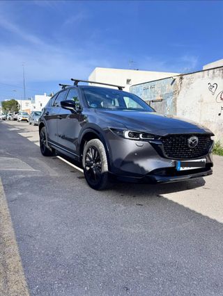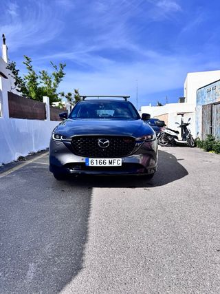 Ficha principal. Marca y modelo: Mazda CX-5 Versión: e-SKYACTIV G MHEV 2.0 165 CV Año: 2023 Kilómetros: 47.000 km Combustible: Gasolina microhíbrido (MHEV) Cambio: Automático de 6 velocidades con modo manual desde el volante Potencia: 165 CV Ubicación: Ibiza Color exterior: Gris oscuro metalizado Color interior: Negro Puertas: 5 Etiqueta ambiental: ECO Número de dueños: 2 ITV hasta: 24/02/2027 Estado general: Como nuevo, con algún pequeño rallajo Accidentes: No Mantenimiento: Última revisión el 30/12/2025 Garantia hasta 2029 Equipamiento principal: Cambio automático de 6 velocidades con levas/función manual Faros Full LED Llantas de aleación de 19” Black Metallic Tapicería combinada en cuero/símil cuero Asientos conductor eléctrico Asientos delanteros calefactables Volante calefactable Portón trasero eléctrico Pantalla multimedia táctil Android Auto y Apple CarPlay Equipo de sonido BOSE con 12 altavoces Cámara 360º Cámara delantera y trasera con opción ojo de pez Sensores de aparcamiento Control de crucero Asistente de cambio de carril Frenado automático / asistentes de seguridad Reconocimiento de señales Retrovisores exteriores plegables eléctricamente Cargador inalámbrico para móvil Modo ECO y modo Sport Sistema AUTOHOLD Extras: Paquete aerodinámico Función MyMazda Intelligent con control desde el móvil que incluye ver: GPS, estado de puertas, asistencia, presión de ruedas, nivel de combustible, nivel de aceite, kilometraje y funcion antirrobo. Retrovisor interior inteligente Volante multifunción Ventanas eléctricas Cierre automático de puertas Consola central Maletero con compartimento inferior Alfombrillas “Luxury” delanteras y traseras con absorción de ruido Barras transversales portaequipajes / baca