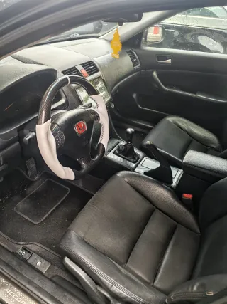 Vendo Honda Accord en muy muy buen estado. Dos propietarios. El coche va fantástico, no hay que hacerle nada. Solo el volante que tiene un pequeño desgaste en un zona. Difícil de encotrar una pieza así. Itv hasta Febrero, pero si le interesa la paso yo la itv. Neumáticos Michelin, techo solar, cuero, llantas OZ, muy cuidado, muy bien de embrague, faros xenon. Una maravilla de motor vtec.
