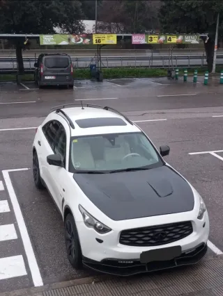 INFINITI FX 30 D V6 S AWD automático – PREMIUM - es un SUV deportivo de lujo fiable y potente, motor 3.0L V6 de 238 CV. – GARANTIA de 6 meses ampliables a 1 año. Vehículo muy cuidado y en perfecto estado. Revisiones hechas en la marca. ITV hasta dic-2026. Al ser la versión premium, todos los extras son de serie, cámaras 360°, sensores de parking delanteros y traseros, arranque-apertura-cierre sin llave, techo solar, navegador, avisador cambio involuntario de carril, velocidad de crucero, asientos deportivos eléctricos con memoria en cuero ventilados y calefactados, llantas 21”, sistema de sonido bose, cristales tintados, techo solar, levas en volante. Motor y Prestaciones: 3.0 litros V6 Turbodiésel (V9X) - 238 CV a 3.750 rpm - 2.991 cm3 - Par máx 550 Nm a 1.750-2.500 rpm - Velocidad máx 212 km/h - Aceleración 0-100 km/h: 8,3 seg - distribución: Doble árbol de levas en cabeza (DOHC) Transmisión y Chasis: Tracción Integral (AWD, 4WD, 4x4) – Cambio autom de 7 velocidades - Suspensión Independiente en ambos ejes con barra estabilizadora - Frenos Discos ventilados (delanteros 355 mm / traseros 350 mm) - Llantas aleación de 21" - Neumáticos: 265/45 R21 W Dimensiones y Capacidades: Largo/Ancho/Alto 4.865 mm/ 1.925 mm / 1.674 mm - Maletero 410 L – Peso en vacío 2.150 kg - Depósito 90 L Características Especiales del acabado "S" Dirección trasera activa (RAS) mejora la agilidad - Suspensión Deportiva Continua (CDC) con modos Auto y Sport. Seguridad y conducción: Airbag frontal conductor y pasajero - Airbags laterales delanteros - Antibloqueo de frenos (ABS) - Columna de dirección con ajuste eléctrico regulable en altura y profundidad - Control continuo de amortiguación (CDC) - Control de crucero y limitador de velocidad - Control de estabilidad -Control de presión de neumáticos (TPMS) - Faros antiniebla - Faros de xenón - Levas en volante - Ordenador de viaje - Retrovisor interior con anti deslumbramiento automático - Retrovisores exteriores calefactados - Y más ..