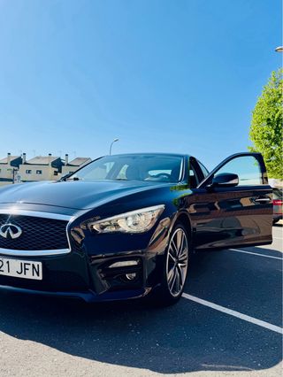 Infiniti Q50 2.2 GT premium, con solo 125.000kms. De Junio de 2016 Estado impecable, muy mimado y siempre durmiendo en garaje. Etiqueta medioambiental C. Coche de no fumador. Se acepta prueba mecánica. Equipamiento destacado (full equip): - Sensores de aparcamiento delanteros y traseros - Cámara trasera - Sensores de luz y lluvia - Techo solar - Doble pantalla central - Navegador GPS - Control de crucero adaptativo - Cambio automático con levas en volante - Asientos de cuero eléctricos y calefactables - Keyless Total (entrada y arranque sin llave) - Faros LED delanteros y traseros - Llantas 19” - 14 altavoces de sonido premium marca Bose