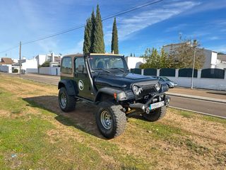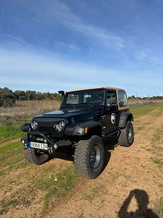 Se vende Jeep Wrangler TJ con muchos extras: paragolpes hierro delantero y trasero neumaticos 35 mud terrain suspension +5 cabrestante come up snorkel capota dura valorada en 2500 euros capota de tela juego de paragolpes tubulares posibilidad de darlo con llantas a estrenar en 17” bola remolque americana faros y pilotos led mas info por privado