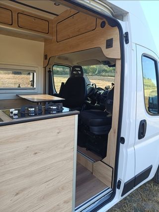 Furgoneta en Preparación ■ Fiat Ducato 2.3 Multijet L2 H2 ● Año 2009 ● Motor 2.2 Multijet 120cv ● 91.000 km ● Nacional , único propietario ● Todos los Mantenimientos al dia . ● Cubiertas año 80% de vida . ● Climatizador en cabina . ■ Camperizacion a estrenar: ● 4 Plazas para viajar y 2 para dormir con opcion de poner cama litera ● Aislamiento Kaiflex de 20mm ● Mobiliario en HPL ● Calefacción estacionaria. ● 2 claraboyas con ventilador , una en la zona de la cama y otra en la cocina. ● frigorífico 85 litros cz ● cama de 135 x 185 cm ● depósito aguas limpias de 105 litros . ● Depósito aguas limpias de 110 litros . ● 3 ventanas abatibles. ● Placa solar de 450w ● Batería auxiliar de lifepo4 180ah ● toma exterior de 220v. ● Toma exterior agua . 12 meses de Garantía Más información por privado 6 3 3 9 2 1 5 6 8.